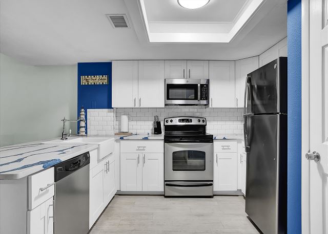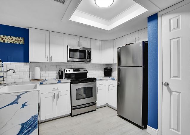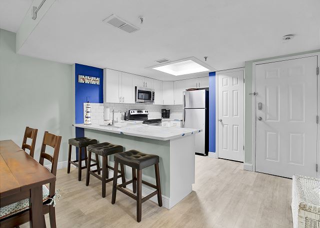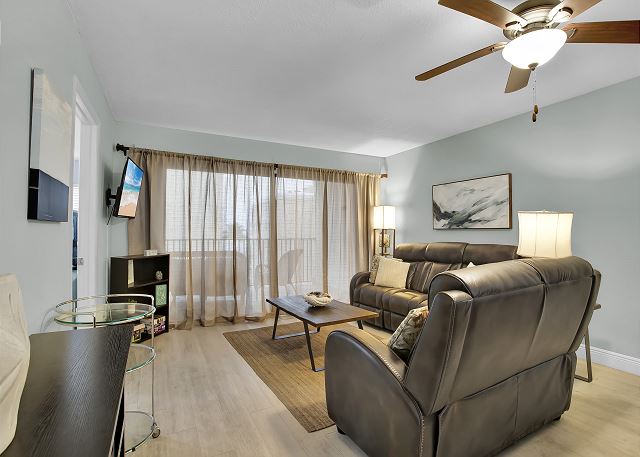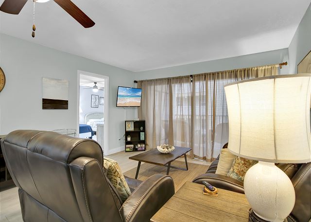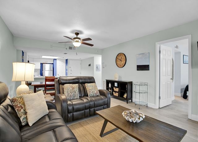 Welcome to your Madeira Beach getaway! Located directly across from the vibrant John's Pass Village and Boardwalk, this well-appointed condo offers the perfect blend of comfort and convenience for your beach vacation. The fully equipped kitchen features recent upgrades including new cabinets, butcher block countertops, and stainless steel appliances—everything you need to enjoy meals at home.